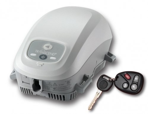 The Somnetics Transcend ii, which weighs less than one pound, has become quite popular with travelling CPAP users. It boasts a 29 dB sound rating and is about the size of a soda can. The optional battery pack allow for use anywhere and the Portable Solar Charger has been a popular accessory.